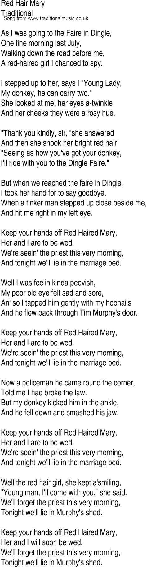 Thank you kindly sir i answered, then i. Web red haired mary lyrics. A red haired girl i chanced to spy. [g]o, ’twas going to the fair in [d7]dingle [g]one fine morning [c]last july. While going up the road before me. Listen online and get new recommendations, only at last.fm And [g]walking down the road be [d7]fore me a [g]red. One day you say you love me. Tonight we'll lie in a married bed. Web now, when we reached the town of dingle. And he belted me in my left eye.