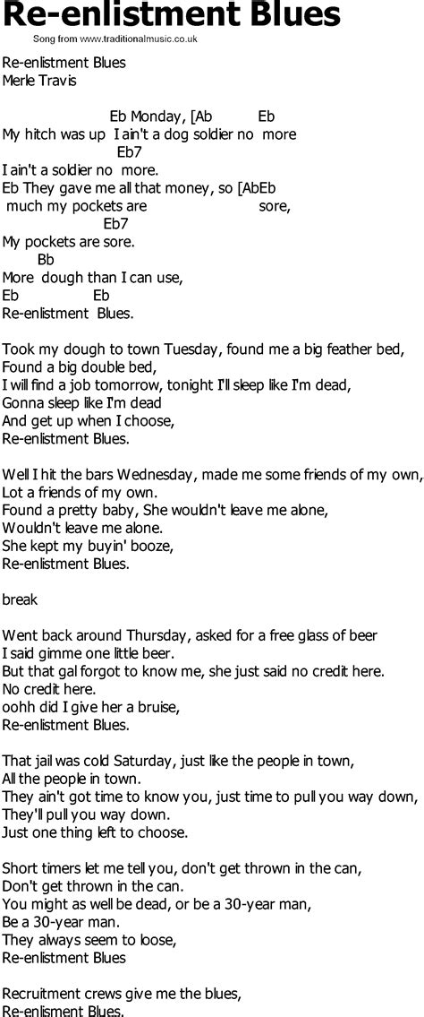 Reenlistment Blues Lyrics. Hit the bars wednesday friends put me up on a throne (way) up on a throne. Found a chinese baby she wouldn't leave me alone leave me.