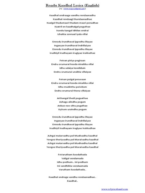 Rendu Kaadhal Lyrics. Web lyrics should be broken down into individual lines use section headers above different song parts like [verse], [chorus], etc. Use italics ( lyric ) and bold ( lyric ) to.