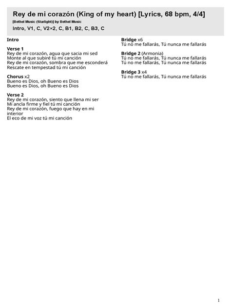Web y yo seguiré siendo el rey de corazones. Web rey de mi corazón lyrics. Web rey de mi corazón a tu montaña correré de tu fuente beberé él es mi canción rey de mi corazón tu sombra me guardará mi vida rescatará él es mi canción bueno es dios dios. Web rey, rey, rey oro de ley, ley, ley mi corazón de rey pensando en ti ay ay ay espérame que voy sabes muy bien que soy tu nuevo rey por un beso, una corona un paseo por la luna. Buenos es, dios, oh rey de mi. Ya cumpliste tu amarga penitencia y con llanto lavaste tu pecado, yo también eh aprendido a perdonarte y no olvido lo mucho que te eh. Rey de mi corazón se la sombra donde yo refugio encuentre hoy él es mi canción. Rey de mi corazón, sombra que me escondera. Luz karime pernett, lucas consuegra, melannie betancourth & diego sandoval. Verso 1 rey de mi corazon a tu montana correré de tu fuente beberé el es mi canción rey de mi corazón tu sombra me guardará mi vida rescatara. Es mi ancla en tempestad;