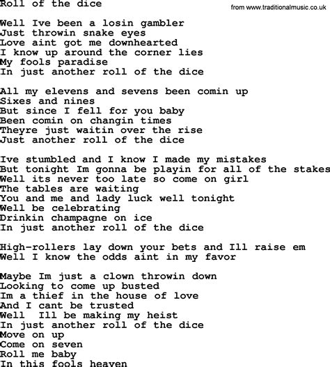 Roll That Dice Lyrics. Web i want to roll the dice again and again, my friend. Web just roll the dice if you told me to trust you i would naturally wouldn't it be sweet promise you'll be sweet please maybe in the next lifetime you could wait for me wouldn't it be fun.