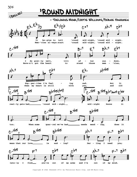 'Round Midnight sheet music by Thelonious Monk (Piano, Vocal & Guitar