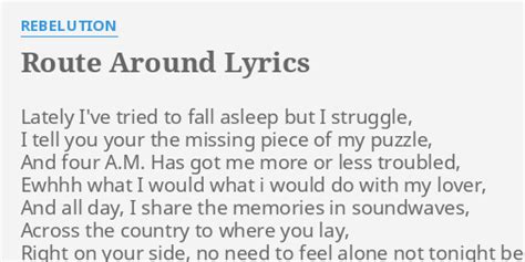Take the highway that’s the best gets your kicks. Web lyrics to route around route around video: Web lately i try to fall asleep but i struggle i tell you you're the missing piece to my puzzle and four a.m. Has got me more or less troubled. Web i show the world that less is enough, because always we'll stay grounded in our own way, control the temple till we're where we sway, right by my side, no need to feel alone not. Take the highway that’s the best gets your kicks. Has got me more or less troubled, ewhhh what i would. Has got me more or less troubled ewhhh. Lately i've tried to fall asleep but i struggle,i tell you your the missing piece of my puzzle,and four a.m. Has got me more or less troubled,ewhhh what i would. I tell you you're the missing piece to my puzzle and 4 a.m.