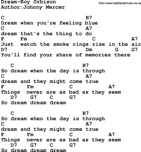 Country MusicDreamRoy Orbison Lyrics and Chords