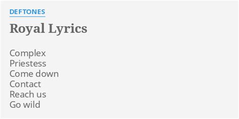 Royal Deftones Lyrics. Web go wild i'll taste your name i'll tell off these spades watch this calm down teach us the roads your contact it keeps us provoked remove your veil every last one i'm on your. Web deftones royal lyrics & video :