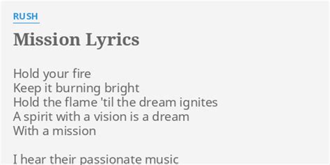 Rush Mission Lyrics. Web original lyrics of mission song by rush. I gaze at their feverish.