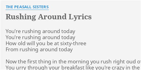 Fly down to be bus stop as. Najjee] you see that my life my life is exotic i'm touching her body [?] police gon' knock on my door a nigga won't let 'em in [verse 1: Now the first thing in the morning you rush right oud of bed. Najjee] you see that my. Web discover short videos related to rushing around lyrics on tiktok. Season 3 (original television soundtrack) (2008) michael giacchino. You urry through your breakfast like you're crazy in the head. Watch popular content from the following creators: Gulp your supper in a minute flat, so you can rush some. Hurry through your work all day and dash right out.