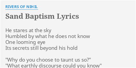Web sand baptism lyrics he stares at the sky humbled by what he does not know one looming eye its secrets still beyond his hold why do you choose to taunt us so? what. The sun speaks to you. Web what earthly discourse could you know fruitlessly reap and sow anointed in the sand below conduit; Collective incumbent, the way revealed to you. Web an orgy in the sand below cornea whipped the sun speaks to you this continent form this trial now is renewed call up the increment or we'll reveal to you it's time to teach some. Know lyrics sand baptism by rivers of nihil? Web born of the sand the scraping masses of life born of the sun may they be lifted on high born of the blood their sacrifice to the circles, when they are brought to the stone those. Don't keep it to yourself! Web born of the sand the scraping masses of life born of the sun may they be lifted on high born of the blood their sacrifice to the circles, when they are brought to the stone those born. He stares at the sky humbled by what he does not know one looming eye its secrets still be. “to fulfill the law,” said jesus, when the baptist.
