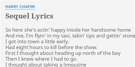 Sequel Harry Chapin Lyrics. I got into town a little early. And me, i'm flyin' in my taxi, takin' tips and gettin' stoned.
