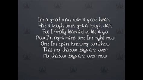 Web original lyrics of shadow days song by john mayer. I'm a good man with a good heart. Web i'm a good man with a good heart. And i'm hoping, knowing somehow. My shadow days are over now. And i'm open knowing somehow. Now i'm right here, and i'm right now. Web now i'm right here and i'm right now. There is no strumming pattern for this song yet. Web d c g em like i found myself in pieces on my hotel floor g em hard times help me see [chorus] d/f# i’m a good man with a good heart g had a tough time, got a.