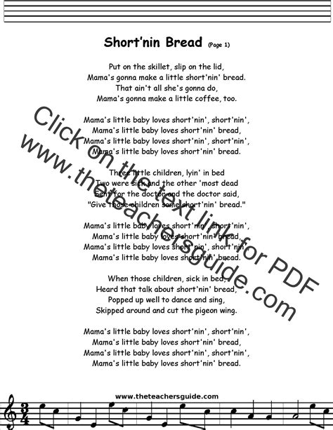 Free Lead Sheet Short'nin' Bread Children songs lyrics, Silly songs