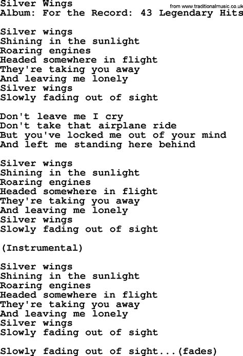 Silver Wings With Lyrics. But you locked me out of your mind. While you were sleeping soundly in your bed.