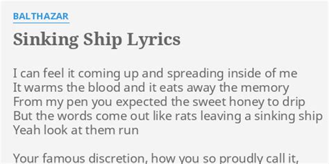 Sinking Ship Lyrics. Web if this sinking ship goes down take my broken hands takes a sunrise to understand both my broken hands are true always here and now tried to drift dear but don't know how. Hold mih head when a sailor bawl.
