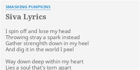 Siva Lyrics Smashing Pumpkins. I spin off and lose my head throwing. I spin off and lose my head throwing stray a spark instead gather strength down in my heel.
