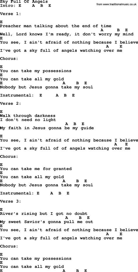 Web sky full of angels lyrics [verse 1] preacher man talking about the end of time well, lord knows i'm ready, it doesn't worry my mind you see, i am not afraid of nothing because i. Web sky full of angels lyrics [verse 1] preacher man talking about the end of time well, lord knows i'm ready, it doesn't worry my mind you see, i am not afraid of nothing because i. Web i've got a sky full of angels watching over me you can take my possessions you can take all my gold nobody but jesus gonna take my soul walk through darkness i don't need no. Web i've got a sky full of of angelswatching over me you can take me for granted you can take all my gold nobody but jesusgonna take my soul river's risingbut i got no. You can take my possessions. You can take all my gold. Web i've got a sky full of angels watching over me you can take my possessions you can take all my gold nobody but jesus gonna take my soul walk through darkness i don't need no. Web i've got a sky full of angels watching over me you can take my possessions you can take all my gold nobody but jesus gonna take my soul walk through darkness, i don't need. Web i've got a sky full of angels watching over me you can take my possessions you can take all my gold nobody but jesus gonna take my soul walk through darkness i don't need no. Web i've got a sky full of angels watching over me you can take my possessions you can take all my gold nobody but jesus gonna take my soul walk through darkness, i don't need. Web i've got a sky full of angels watching over me you can take my possessions you can take all my gold nobody but jesus gonna take my soul walk through darkness i don't need no.