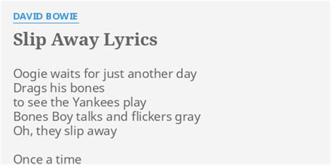 Slip Away Lyrics. Web what would i give for just a few moments what would i give just to have you near tell me you will try to slip away somehow oh, i need you, darling i want to see you right now. The nearer your destination, the more you're slip sliding away. paul simon gave us this koan in this story about three different people who retreat from their passions.