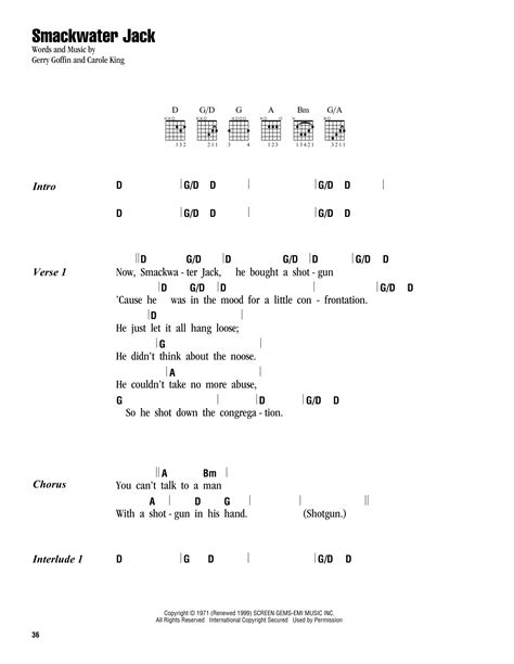Web smackwater jack lyrics. Web now smackwater jack, he bought a shotgun 'cause he was in the mood for a little confrontation he just let it all hang loose he didn't think about the noose he couldn't take. Web [intro] | d | d | d | d | [verse] d now smackwater jack, he bought a shotgun d cause he was in the mood for a little confrontation d he just let it all hang loose g he. Web a shotgun in his hand (smackwater jack, yeah) smackwater jack bought a shotgun yeah, smackwater jack bought a shotgun oh, smackwater jack, yeah (smackwater. Web now smackwater jack, he bought a shotgun 'cause he was in the mood for a little confrontation he just let it all hang loose he didn't think about the noose he couldn't take. Web a shotgunin his hand (smackwater jack, yeah) smackwater jack boughta shotgun yeah, smackwaterjack boughta shotgun oh, smackwaterjack, yeah. Web [verse 1] now smackwater jack, he bought a shotgun because he was in the mood for a little confrontation he just let it all hang loose he didn't think about the noose he couldn't. Web now smackwater jack, he bought a shotgun bm d a d g cause he was in the mood for a little confrontation d em g he just let it all hang loose a he didn't think. Web carole king sings 'smackwater jack' from her 1971 ode album 'tapestry'. Web about press copyright contact us creators advertise developers terms privacy policy & safety how youtube works test new features nfl sunday ticket press.