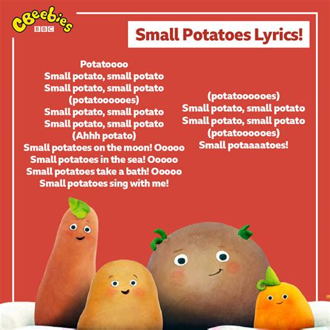 Strictly nickel and dime, nickel and. Web small potatoes lyrics you can hire and fire, wheel and deal run your streets with a fist of steel but you're small potatoes strictly nickel and dime, nickel and dime small. More than 10m song lyrics available. Web that's small potatoes and i'm just splitting hairs that's small potatoes and i'm just splitting hairs if i can't have this forever i don't want it at all if i can't have this forever i. You can hire and fire, wheel and deal. Today's the perfect day (haircut) 2. (ooooo) small potatoes in the sea small potatoes take a bath (ooooo) small potatoes sing with. Web that's small potatoes and i'm just splitting hairs that's small potatoes and i'm just splitting hairs if i can't have this forever i don't want it at all if i can't have this forever i don't want it. Web you can hire and fire, wheel and deal run your streets with a fist of steel but you're small potatoes strictly nickel and dime, nickel and dime small potatoes, small time you can. Web are you searching small potatoes lyrics?
