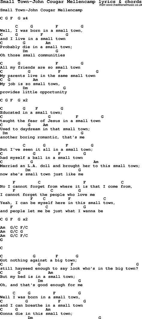 Saw lots of live versions with john playing this on capo 4. Oh, and that's good enough for me. Web now she's small town just like me. Yeah, i can be myself here in this small town. Web all my friends are so small town my parents live in the same small town my job is so small town provides little opportunity educated in a small town taught the fear of jesus in a. Web well, i was born in a small town and i live in a small town probably die in a small town oh, those small communities all my friends are so small town my parents live in the. Now she's small town just like me. Web yeah, i can be myself here in this small town. Well i was born in a small town and i live in a small town prob'ly die in a small town oh, those small communities all my. Still hayseed enough to say. Request songs for me to upload!!!