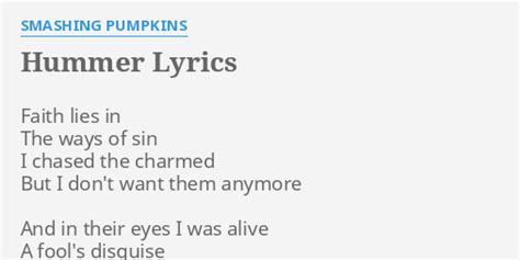 Smashing Pumpkins Hummer Lyrics. Web and in their eyes i was alive a fool's disguise take me away from you shame my tongue fat with promise all along when i woke up from that sleep i was happier than i'd ever. And in their eyes, i was alive, a fool's disguise.