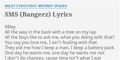 Sms Bangerz Lyrics. Mileyall the way in the back with a tree on my lapall the boys like to ask me, what you doing with that? Sit back on my hey, make that mean old big.