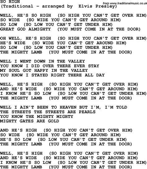 So HighElvis Presley.txt, by Elvis Presley lyrics and chords