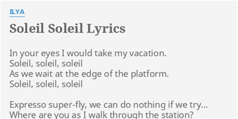 Soleil Soleil Lyrics. Web soleil soleil can you hear my sorrow soleil soleil i'm not sure that you will be here tomorrow am i the only one who can see your pain as you die another death in the blood red. The author of translation requested proofreading.