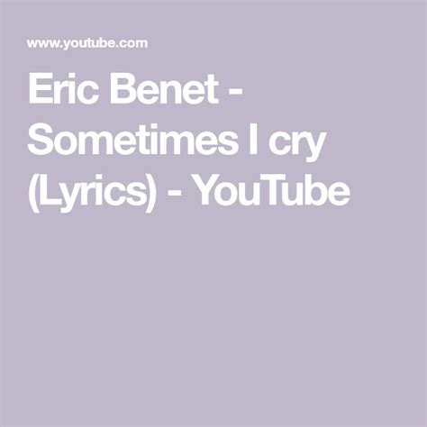 Sometimes I Cry Lyrics Eric Benet. [verse 2] heard you're moving in with someone new. For a long, long time.