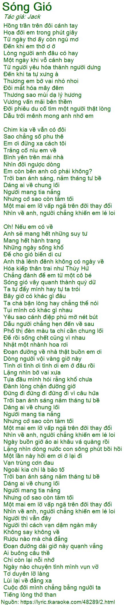 Song Gio Lyrics. Web jack (vietnam) (trịnh trần phương tuấn) sóng gió lyrics: Họa đời em trong phút giâу.