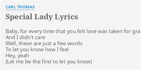 Special Lady Lyrics. [chorus] heard he don’t treat you special lately. I’ll always treat you special baby.