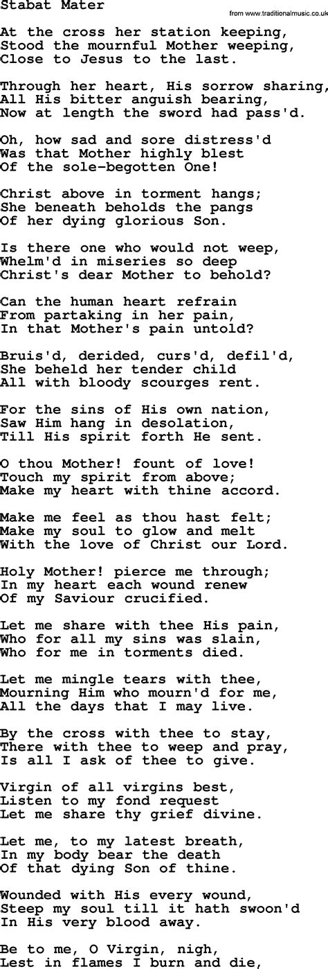 Stabat Mater Lyrics. Web now the wind ventures to other plains hey, when will i see you again if i go? Holy mother, may you do this:
