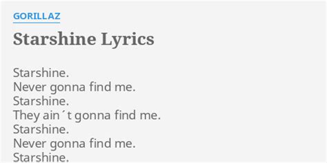 Starshine Gorillaz Lyrics. Web lyrics starshine never gonna find me starshine they ain't gonna find me starshine never gonna find me starshine never gonna find me stand easy with myself, oh myself. Web starshine lyrics starshine when you gonna find me starshine, they ain't gonna find me starshine when you gonna find me starshine, never gonna find me stand easy with my.