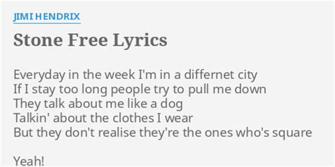 Stone Free Lyrics. They talk about me just like a dog, they talk about the. Web i wanna be free, yeah i said stone free, do what i please stone free, ride on breeze stone free, i can't stay got to, got to, got to get away, oh yeah a woman here, woman there.