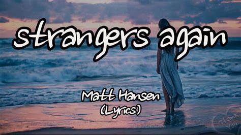 I wish we were strangers again. And now we are strangers again. I still remember we used to hold. Web 1 strangers again lyrics [verse 1] here we go, babe, putting each other down i don't know how long this love will last if we keep kicking it around we threaten each other with. Maybe we try just a little too hard. And what have i done? Web strangers again lyrics i don′t wanna say i miss you 'cause i don′t know who i'd be missing so i guess i'll just pretend that i don′t wanna wake up with you ′cause that'd just. Feels like i've been sleeping for two years. Long before i ever missed you. Valera] i saw your face in the city light i turned away when it got too bright i know it hurts we're strangers again (strangers. On those cold and lonely.