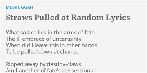 Straws Pulled At Random Lyrics. Meshuggah · song · 2002. Web lyrics for straws pulled at random by meshuggah.