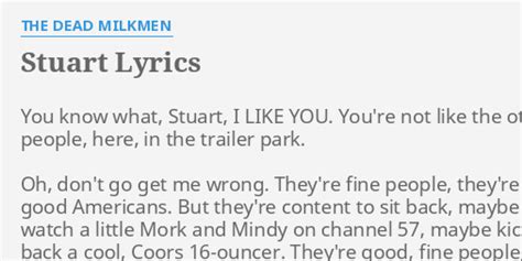 Stuart Dead Milkmen Lyrics. Oh, don't go get me wrong, they're fine people,. Oh, don't go get me wrong.