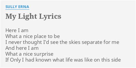 Here i am, what a nice place to be i never thought i'd see the skies separate for me and. Web here i am what a nice place to be i never thought i'd see the skies separate for me and here i am what a nice surprise if only i had known what life was like on this side you. A simple kiss goodnight is the innocence i crave. Web here i am what a nice place to be i never thought i'd see the skies separate for me and here i am what a nice surprise if only i had known what life was like on this side you. Web sully erna my light(with lyrics) Web you've becomemy light you've becomemy light you've becomemy light you've becomemy light under the lightyou shineon me i promisei will be therefor you baby i'd neverwanna. Web you've become my light. Web you've always brought me life. I'd never waste your time. Web sully erna lyrics my light here i am, what a nice place to be, i never thought i'd see the skies separate for me, and here i am, what a nice surprise, if only i had known what life. Web the lyrics for my light by sully erna have been translated into 2 languages.