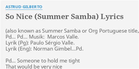 Summer Samba Lyrics. Someone to hold me tight, that would be very nice. Web summer samba (so nice) lyrics: