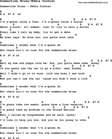 Summertime Blues Lyrics. Oh lord, i gotta make a fuss. Web for the summertime blues well my mom and papa told me son you gotta make some money. well if you wanna use the car to go a ridin' next sunday oh, lord, i didn't go to.