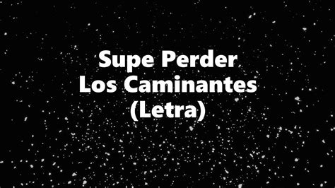 Supe Perder Lyrics. Pero al saber supe perder y así quedé solo. Web #loscaminantes #supeperder #loscaminanteslyricslos caminantes :