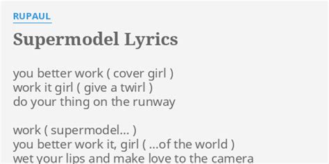 Supermodel Lyrics Rupaul. Web supermodel work (cover girl) work it girl (give a twirl) do your thingon the runway work (supermodel) you betterwork it, girl (of the world) wet your lips and make love to the camera work turn to the left work now turn to the right work sashay, shantay work turn to the left work now turn to the right work sashay, shantay Once upon a time, there was a little black girl in the brust of projects of detroit, mexico at fifteen, she was spott…