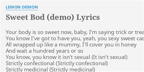 Web sweet bod lyrics [verse 1] your body is so sweet now, baby i'm saying trick or treat now you know i've got to have you, yeah you sexy sweet cadaver all. All wrapped up like a mummy, i'll cover you in. Your body is so sweet now, baby, i'm saying trick or treat now you know i've got to have you, yeah, you s**y sweet cadaver. Web just a lyric video i did for a friend Web your body is so sweet now, baby, i'm saying trick or treat now you know i've got to have you, yeah, you sexy sweet cadaver all wrapped up like a mummy, i'll bury you in honey. Your body is so sweet now, baby, i'm saying trick or treat nowyou know i've got to have you, yeah, you s**y sweet cadaverall wrapped up like a mummy, i'll. You know i've got to have you, yeah, you sexy sweet cadaver. Find who are the producer and director. Web your body is so sweet now, baby i'm saying trick or treat now you know i've got to have you, yeah you sexy sweet cadaver all wrapped up like a mummy i'll cover you in honey. Web the lyrics for sweet bod by lemon demon have been translated into 1 languages.