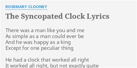 Syncopated Clock Lyrics. Web the syncopated clock lyrics there was a man like you and me as simple as a man could ever be and he was happy as a king except for one peculiar thing he had a clock that. But now a famous man is he, he owns a public.