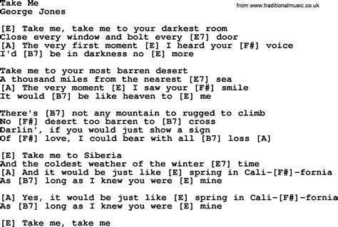 Take Me by Jones Counrty song lyrics and chords