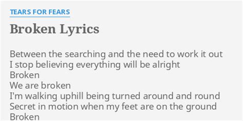 Tears For Fears Broken Lyrics. Web between the searching and the need to work it out. I stop believing everything will be alright.