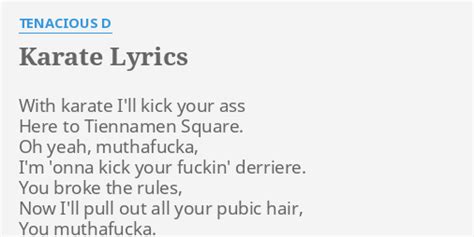 Tenacious D Karate Lyrics. Oh yeah motherfucker, i'm gonna kick your fucking derriere, yeah yeah. 1,947 likes · 64 talking about this · 2,584 were here.