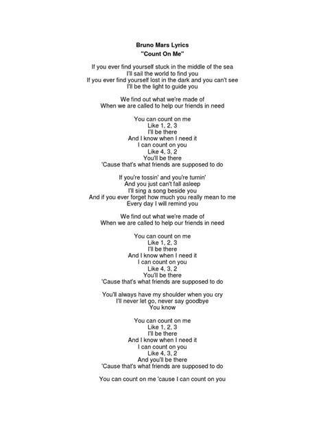 It's better if you don't understand (2010) somewhere in brooklyn. “and if you ever forget how much you really mean to me, everyday i will. Web the lyrics to bruno's 'when i was your man' chorus goes: Silk sonic sort by album sort by song. Listening game to complete the lyrics. Count on me, when i was your man, talking to the moon, just the way you are, grenade, locked out of heaven, the lazy song deutsch. We don't talk about bruno. Peter gene hernandez (born october 8, 1985), better known by his stage name bruno. And i know when i need it i can count on you like four, three, two. Web here is the viral video of me texting my husband bruno mars lyrics 🤣 hope you enjoy #youtubeshort In this screengrab released on march 14, bruno mars of music group silk sonic performs onstage during the 63rd annual grammy awards.