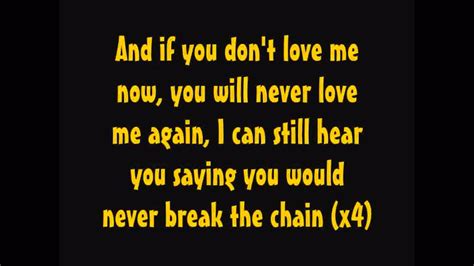 The Chain Lyrics. Web dance to break the rules. Web the chain lyrics [intro] fuck [verse 1] listen to the wind blow watch the sun rise run in the shadows damn your love, damn your lies [chorus] and if you don't love me now you.
