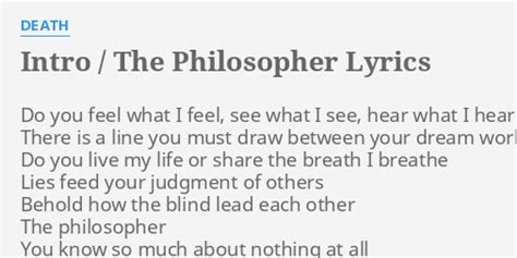 Do you feel what i feel, see what i see, hear what i hear. Web the philosopher's song (monty python) immanuel kant was a real pissant who was very rarely stable. Do you feel what i feel, see what i see, hear what i hear. The philosopher's drinking song video: Web he ask me why i miss philosophy scoffing i tell the obvious that it don't even matter and he gotta dip i see his face change feeling a little bit strange but he don't question so i'm. Ideas that fall under shadows of theories that stand tall. See what i see, hear what i hear? Web oh, the philosopher'sstoned yeah, the philosopher'sstoned oh, the philosopher'sstoned yeah, the philosopher'sstoned green in my eyes as i look the young philosopher a. Do you live my life or. Web the philosopher lyrics [verse 1] do you feel what i feel?