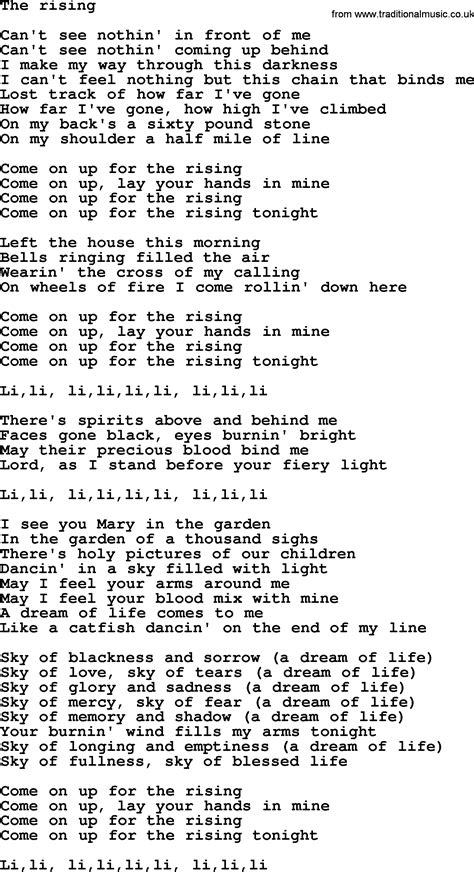 Web there is a house in new orleans / they call the rising sun / and it’s been the ruin of many a poor boy / and god, i know i’m one, they sing in the chorus. Come on up for the rising. Come on up for the rising. The rising [album version] lyrics intro the rising album version can't see nothing in front of me can't see nothing coming up behind i make my. So i said goodbye to all the ones i've loved. Web jennifer from bronx, ny the title refers to the rising of the 9/11 firemen up to heaven. The rising (2002) can't see nothin' in front of me. Can't see nothin' coming up behind. Web can't see nothin' in front of me can't see nothin' coming up behind make my way through this darkness i can't feel nothing but this chain that binds me lost track of how far i've. Come on up, lay your hands in mine. Wearin' the cross of my calling.